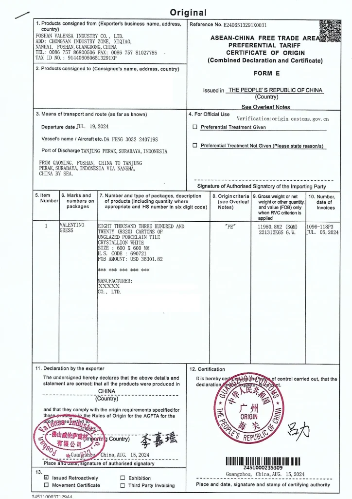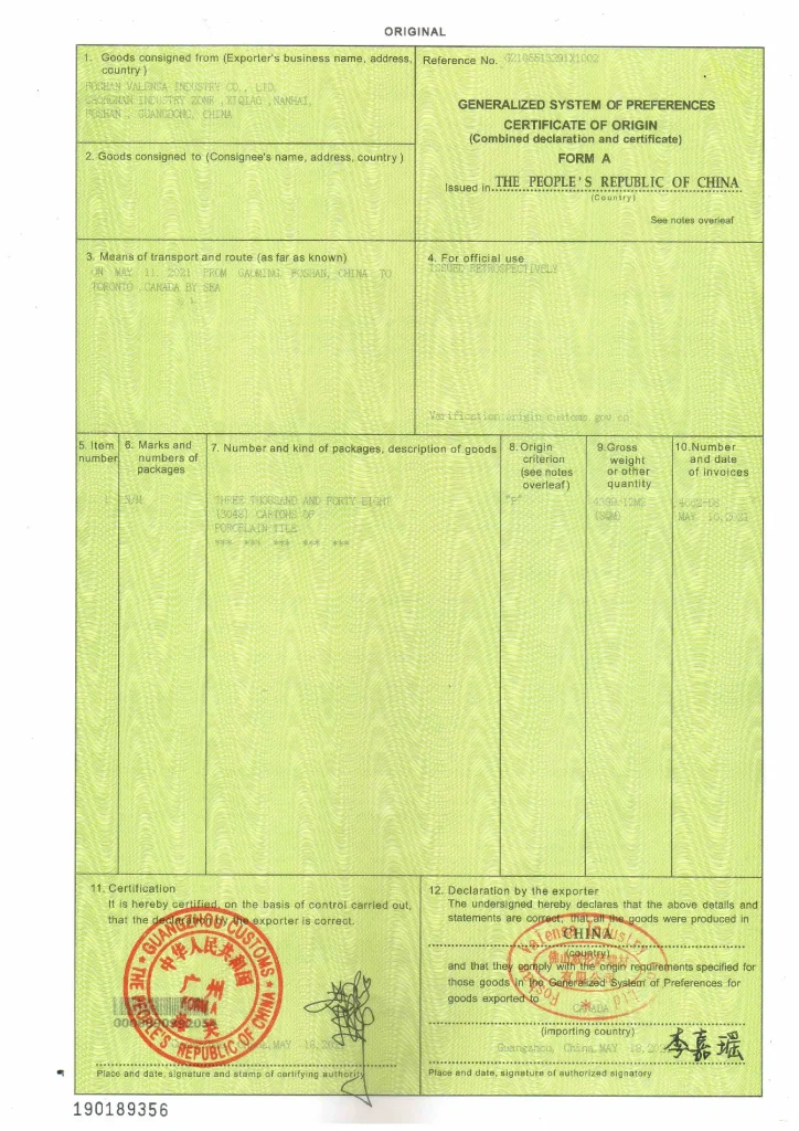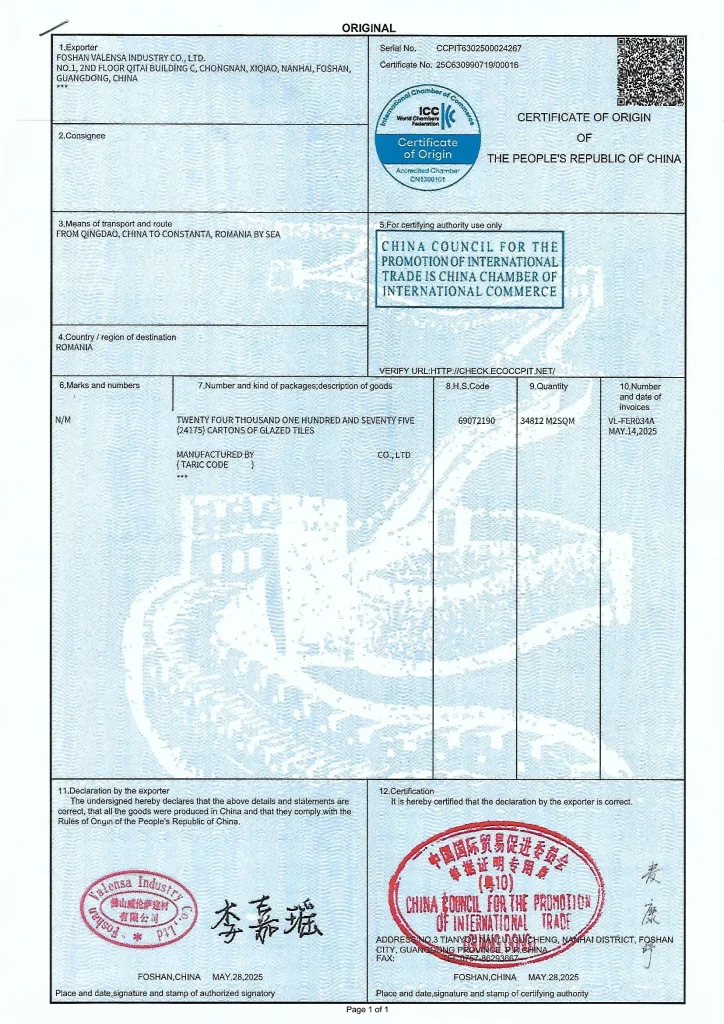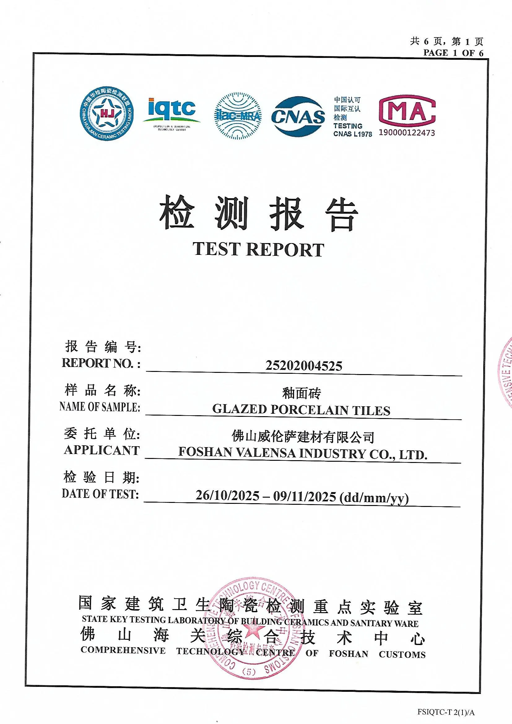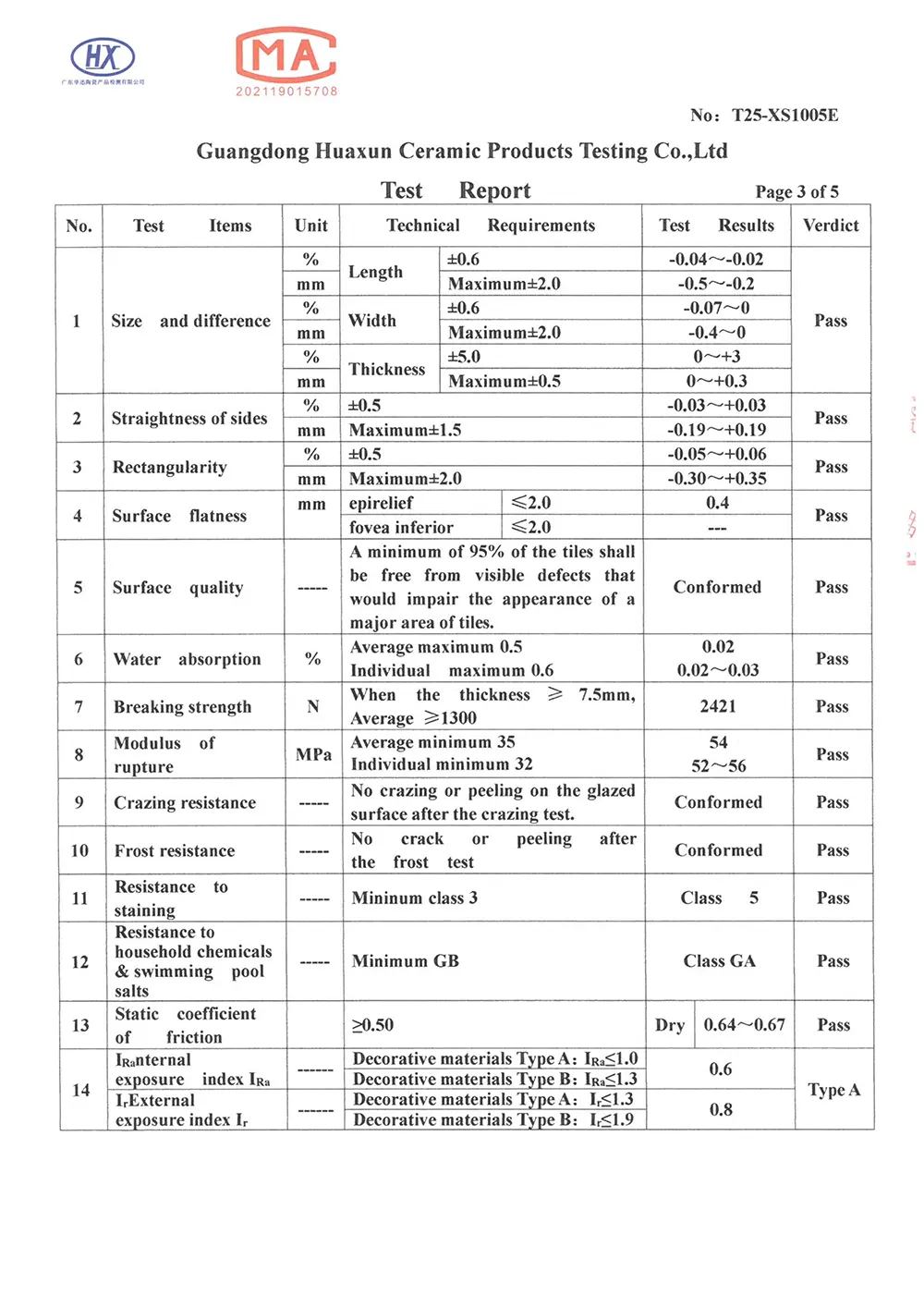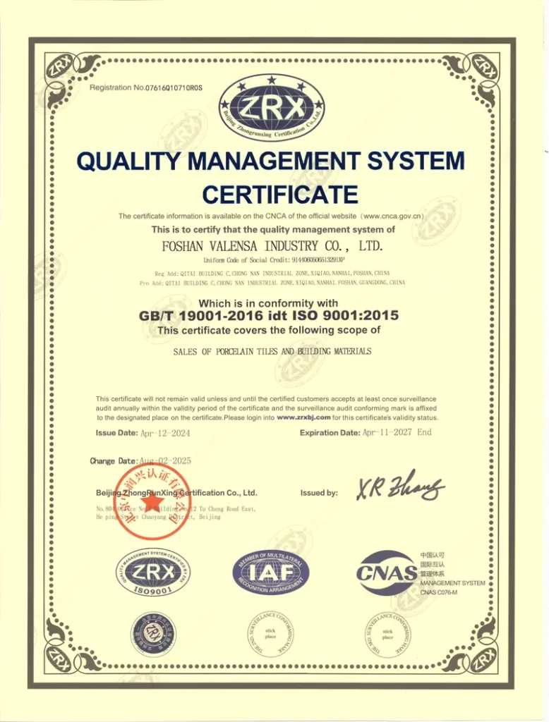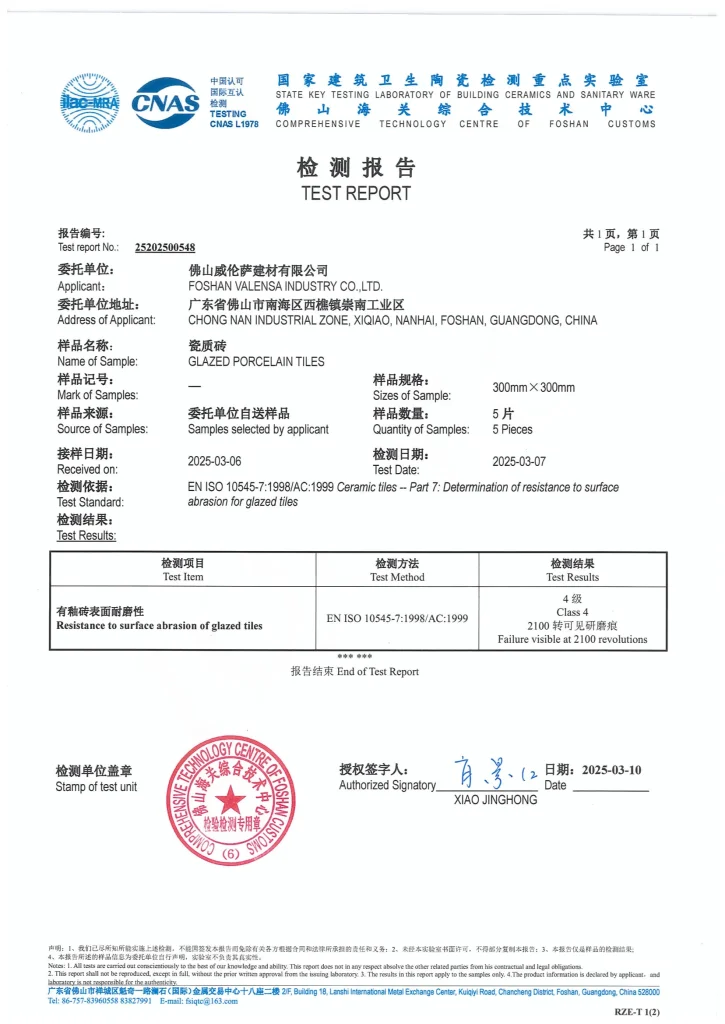 Porcelain Tiles Certifcate