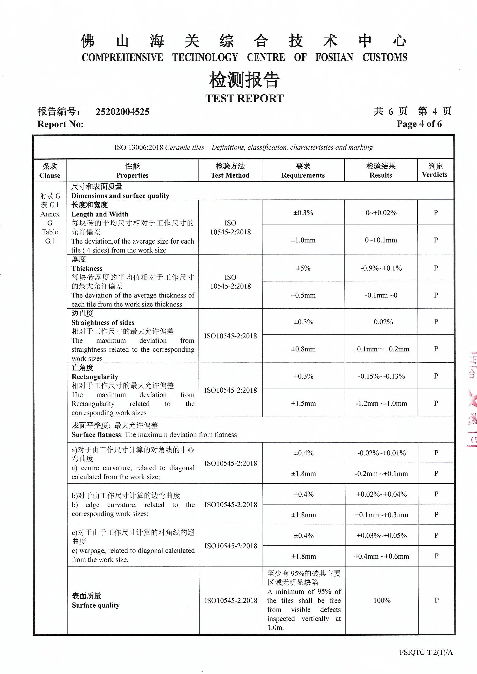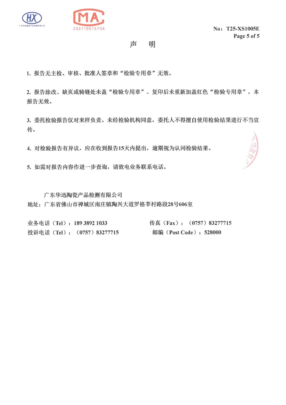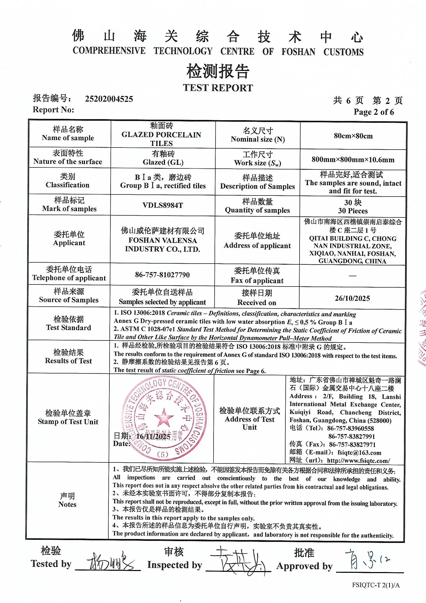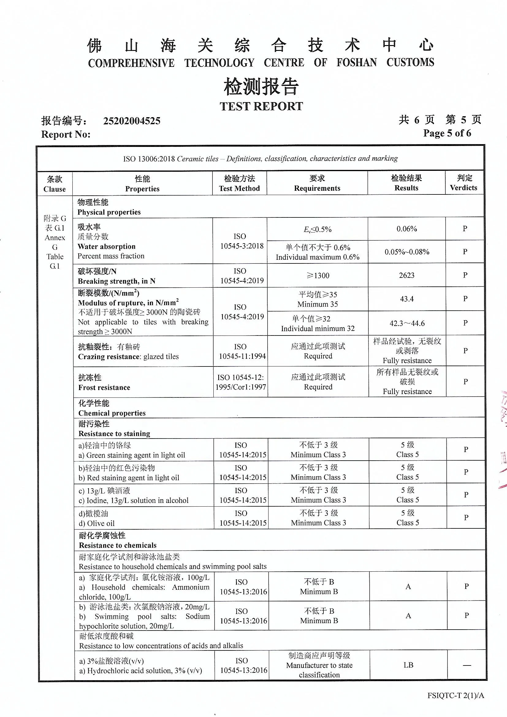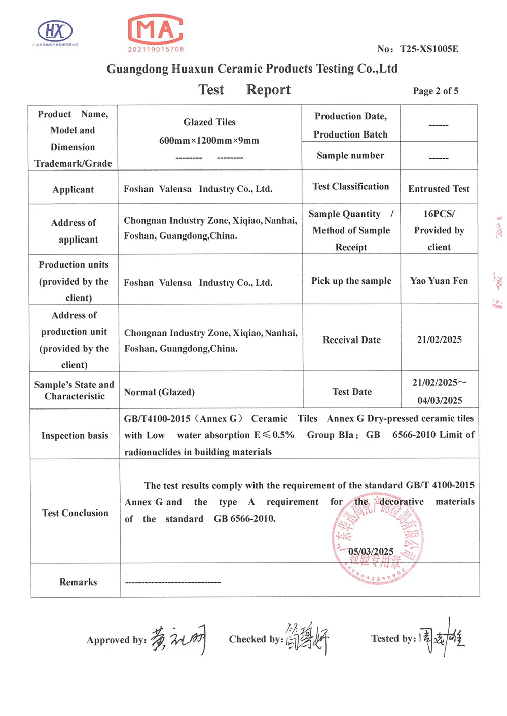 Porcelain Tiles Certifcate